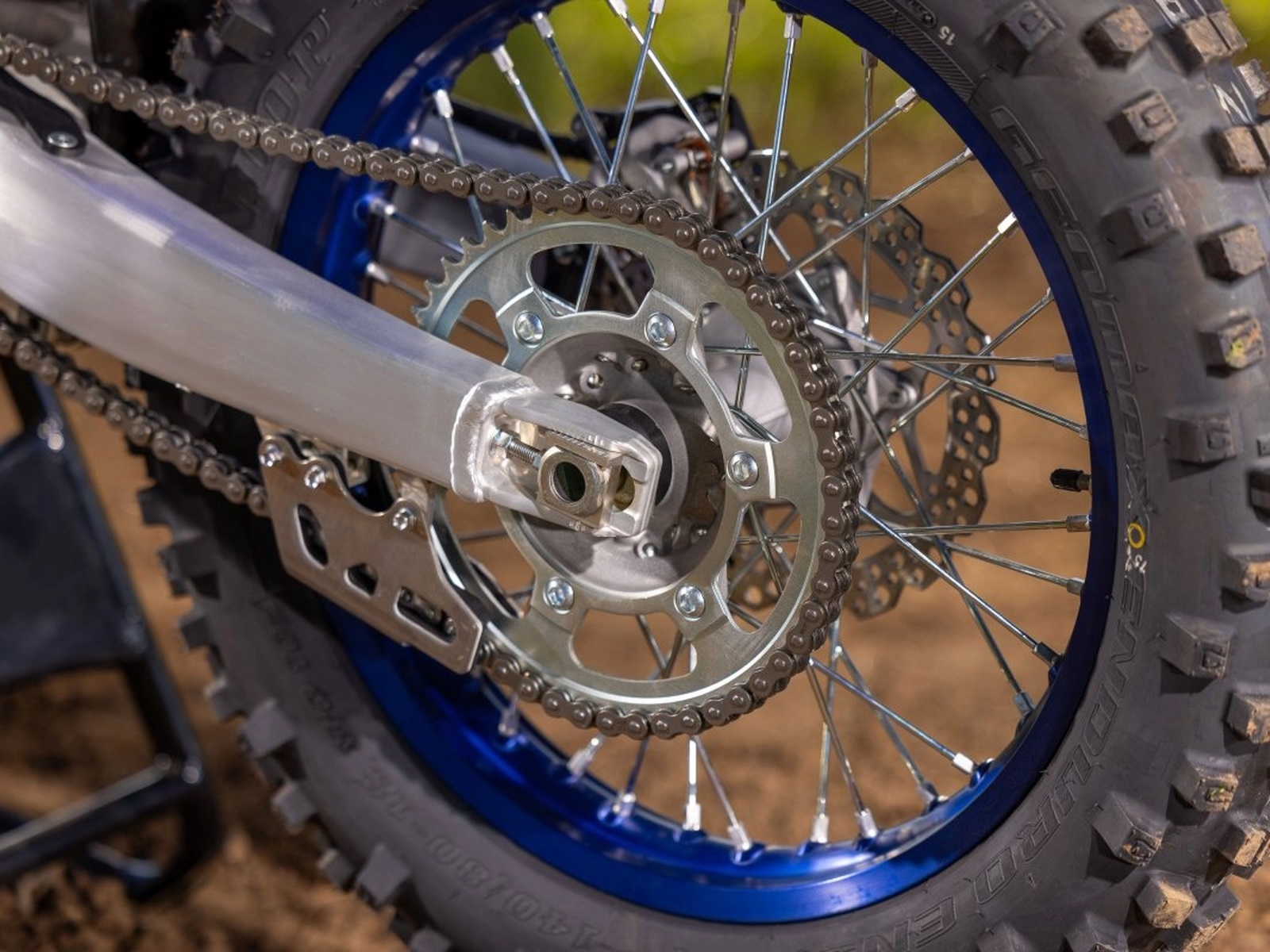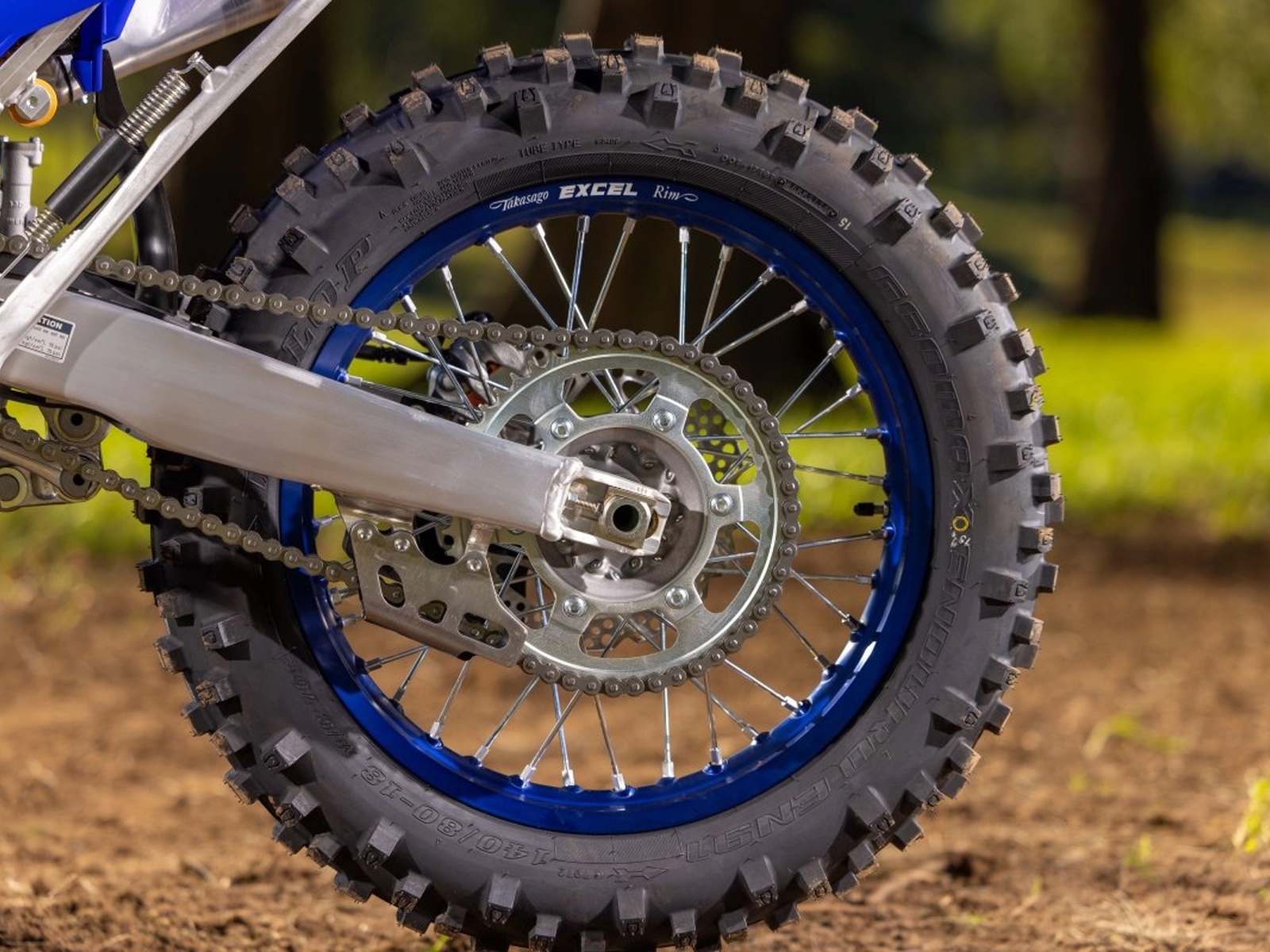 - The WR450F's 18-inch rear wheel comes laced with a three-cross-spoke pattern for improved impact absorption and rider feel.